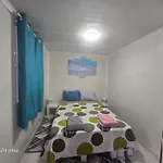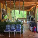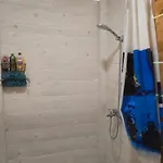 De keuken is uitgerust met een waterkoker, een koelkast en keukengerei, voorzien in een eethoek buiten.